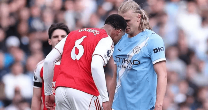 虎扑04月20日讯曼城与阿森纳的争冠天王山之战中,加布里埃尔与哈兰德谋划全场的浓烈抗争成为比赛中枢叙事之一。挪威时尚的紧身内衣在肉搏中被扯破,而第83分钟两东谈主额头相抵、不睦对持的画面更是将炸药味推向偏激。当值主裁安东尼-泰勒最终向两东谈主各出示一张黄牌,这一判罚激发了平淡争议:加布里埃尔是否本应被红牌罚下?BBC足球事务记者戴尔-约翰逊从标准、VAR介入模范和历史案例三个维度进行了深度剖析。
