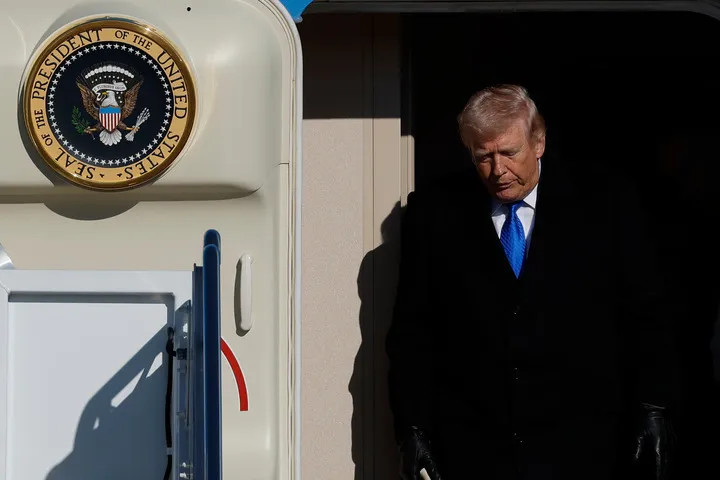 特朗普23日抵达好意思国马里兰州安德鲁斯蚁合基地。好意思联社相片