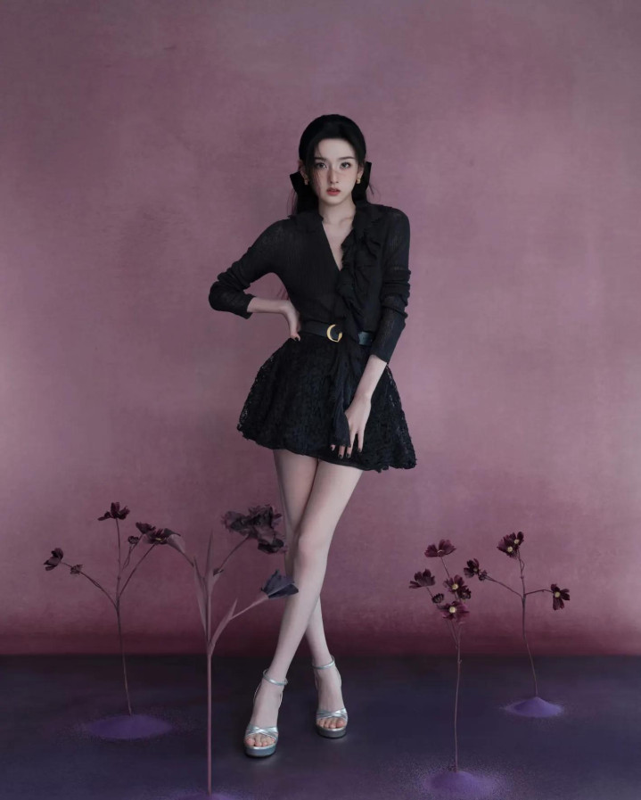 米乐app登录 高明之花宋祖儿、一袭玄色蕾丝短裙, 因循暗黑的氛围感拉满!