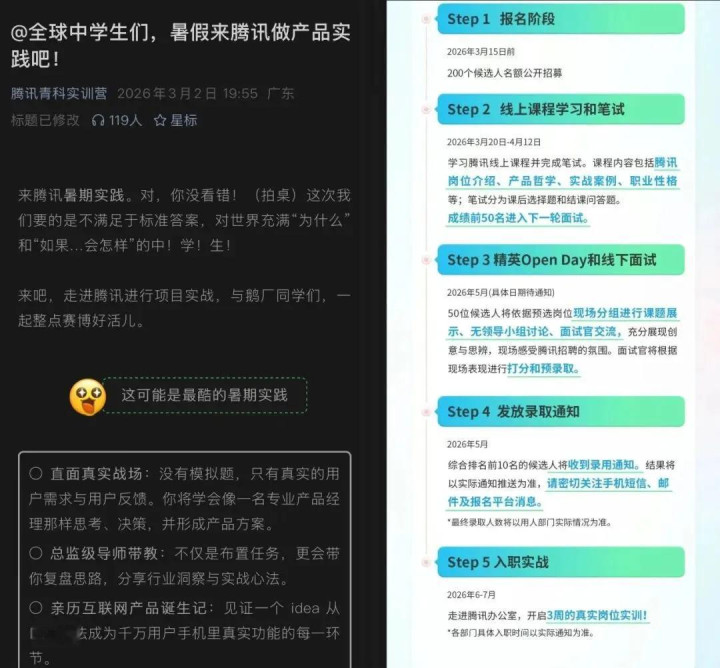 互联网大厂布局更早,腾讯的“少年开采者筹备”,不限学历,不看配景,只看你能弗成解决试验问题;